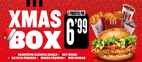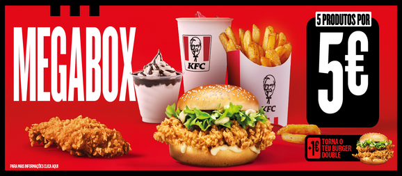 Promoção válida de 07/10/2025 a 16/11/2025 nos restaurantes KFC aderentes e sujeita à disponibilidade de stock. Inclui 4 Emmental Bites + 1 Batata Pequena. Não acumulável com outras ofertas ou promoções, incluindo o Cartão Continente. Não disponível no serviço de delivery. Imagens meramente ilustrativas.
